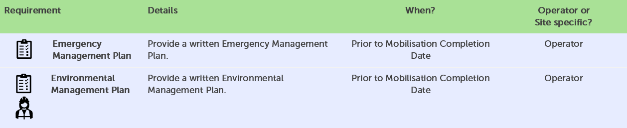 The framework of common and specific conditions applicable to Operator Refund Points where no formal planning or environmental approval is required under any applicable Statutory Requirement, as provided to the Operator at the commencement of the Mobilisation Period and as updated by the PRO from time to time.